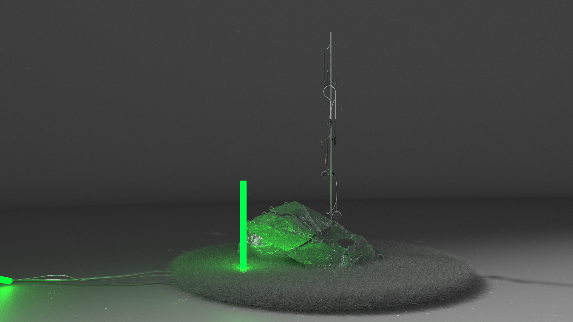 Dirty Twin is the installation format of the research project `Merging Visions`. It operates as an expanded, immersive twin that unfolds beyond the screen through its interaction with the physical samples and spatial installation. This synergy extends the notion of the digital twin from a purely visual or computational model into an embodied, spatial experience. In this way, the digital and physical elements operate together as tools for sensing urban, ecological, and geological processes.